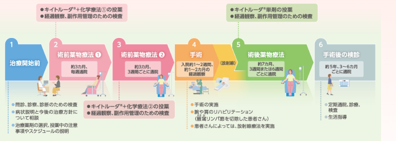 治療方針:術前化学療法(通院)+切除手術(入院)+術後化学療法(通院)